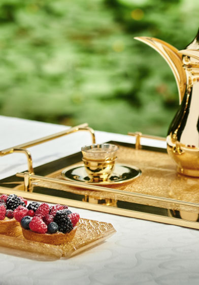 DETAILSVassoio in gold plated con manici, base in foglia oro – 590×350 mm