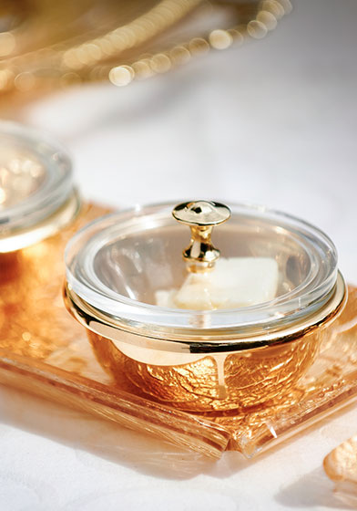 C/146 MINI + BOWLSFind out moreGold leaf mini plexi tray, n. 2 gold plated bowls Ø 950 mm with glass inside and plexi lids – 270×160 mm