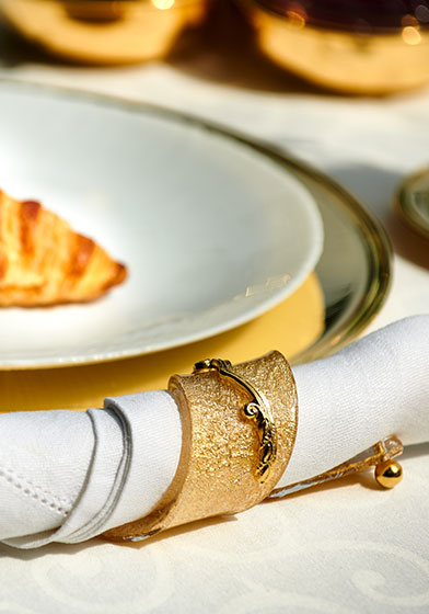 DETAILSPorta tovagliolo in foglia oro con decoro in gold plated – Ø 50 mm